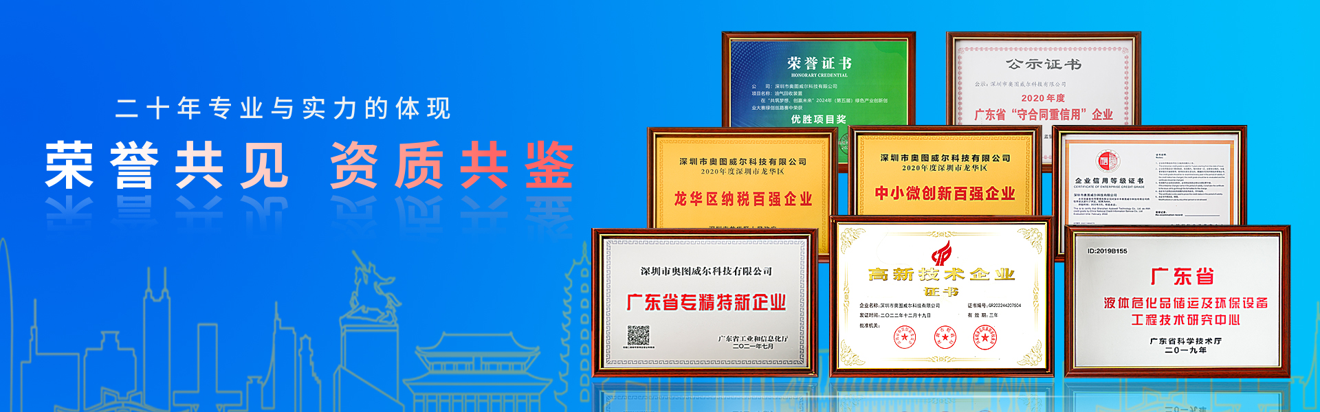 深圳市奧圖威爾科技有限公司創(chuàng)立于2003年。公司總部座落于全球極具經(jīng)濟(jì)與創(chuàng)新活力的粵港澳大灣區(qū)核心城市—深圳,是國(guó)家級(jí)高新技術(shù)企業(yè)、廣東省專精特新企業(yè)、龍華區(qū)中小企業(yè)納稅百?gòu)?qiáng)企業(yè)、龍華區(qū)中小企業(yè)創(chuàng)新百?gòu)?qiáng)企業(yè),并被認(rèn)定為廣東省危化品智能儲(chǔ)運(yùn)及環(huán)保設(shè)備技術(shù)研究中心、深圳市兩化融合貫標(biāo)企業(yè)。